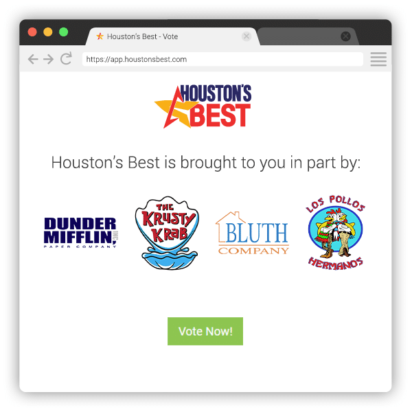 Reward our voters while generating leads for your business with a custom offer. The best feature about Voter Rewards is that it’s 100% performance-based marketing, meaning, you only pay if it works!